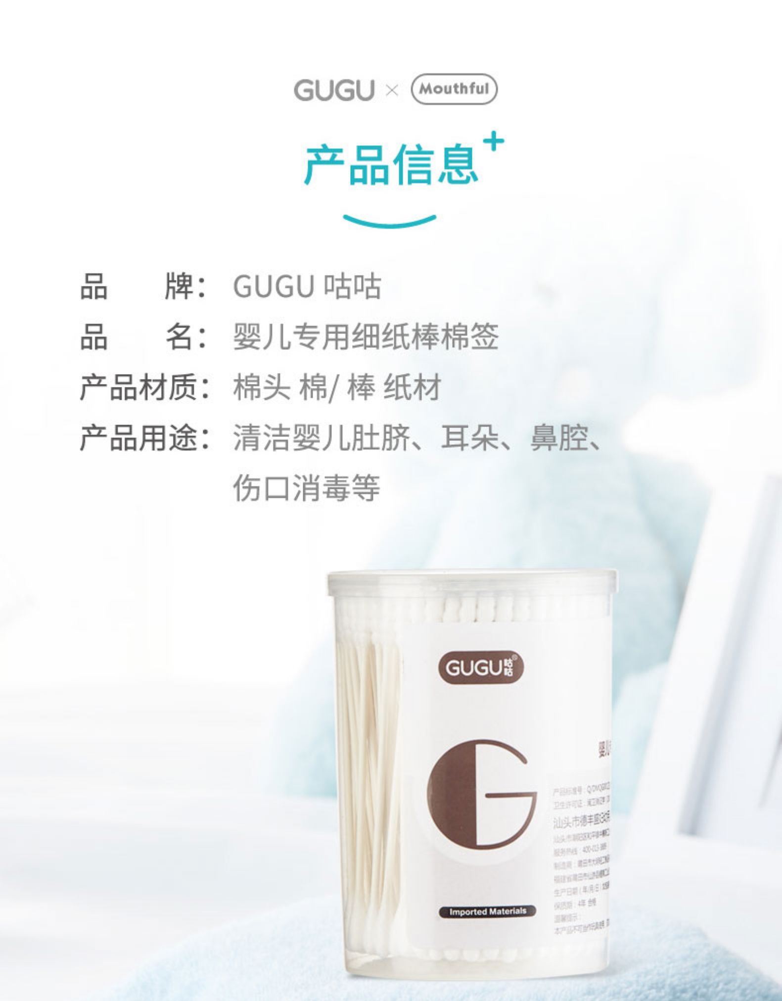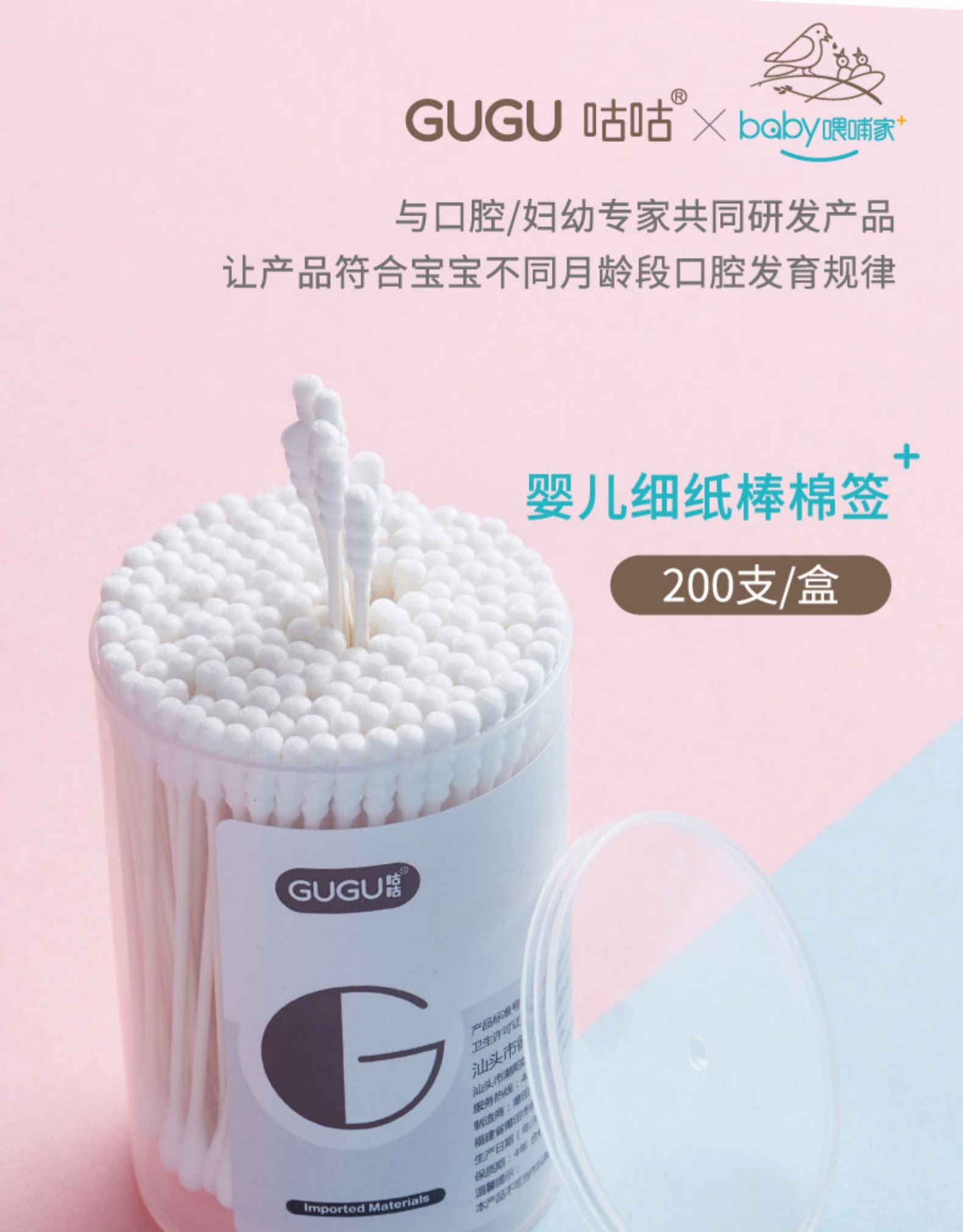 品牌名稱:咕咕 型 號:GI112 品名:嬰兒專用細(xì)桿紙棒棉簽(200支筒裝)